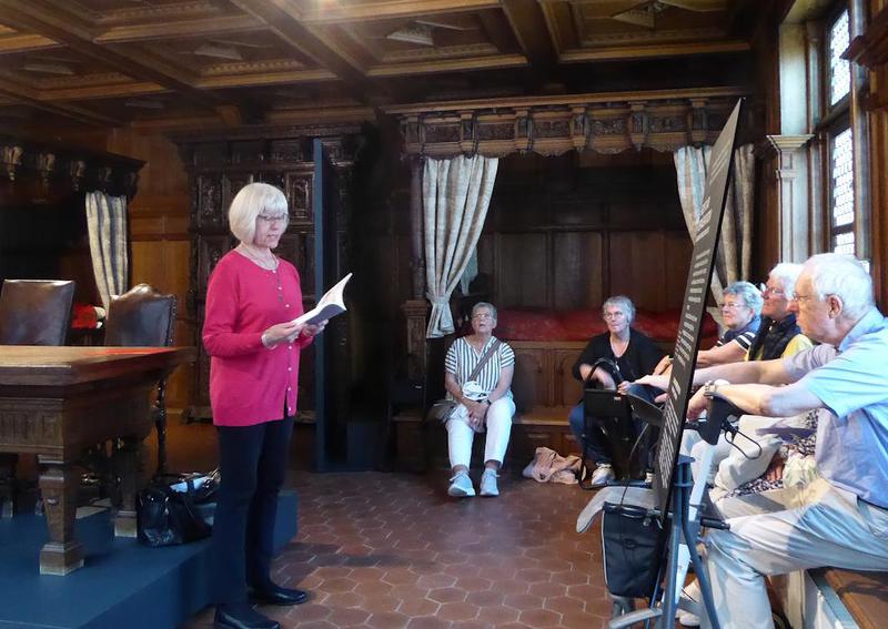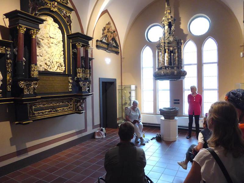 Moderatorin Ellen Balsewitsch-Oldach führte die Gäste durch verschiedene Ausstellungsbereiche des Museums, unter anderem zu den Themen „Schifffahrt“ und „Seeräuberei“, in den Nachbau der Gerichtsstube von Peter Swyn und in den Kirchenraum. Der Rundgang endete in der historischen Gaststätte. Jeder Ort bot die passende Atmosphäre für den dort gelesenen Kurzkrimi.
