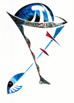 Die Bildinhalte sind überwiegend abstrakt, ohne Bindung an reale Gegebenheiten, diese jedoch nie ganz ausschließend, wobei in den Werken selbst überwiegend geometrische Formen und Muster verarbeitet werden. Die Schnitt-Collagen sind eine Umkehr der üblichen Collage-Technik, die plastisch auf der Oberfläche arbeitet. Dirk-Uwe Becker schneidet seine Formen aus dem Papier und hinterlegt diese Ausschnitte mit Ausrissen aus Illustrierten - Fotos einer anderen Wirklichkeit, die oft nur als Farbe, das eine oder andere Mal aber auch erkennbar, z.B. als Auge, wie hinter einer Maske hervorlugen.
