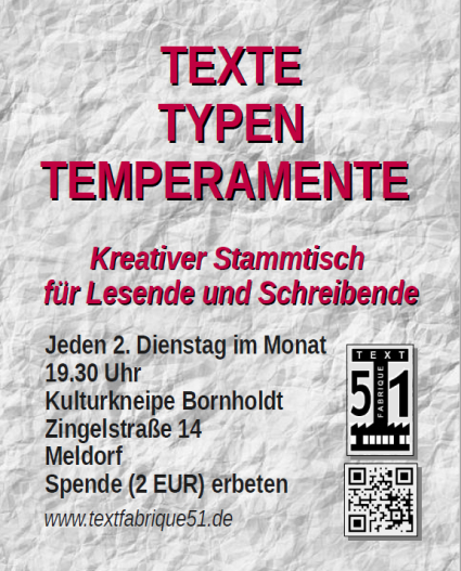 Interesse an Informationen über Veranstaltungen, Termine und Aktivitäten des Literaturnetzwerks Textfabrique51? Kurze Mail an elbaol@gmx.de genügt.