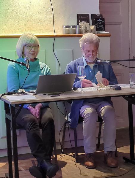 Die Textfabriquanten Ellen Balsewitsch-Oldach und Dirk-Uwe Becker moderieren nicht nur, mit eigenen Texten waren sie jetzt im COURAGE von Klaus-D. Gutsche und Adelina Flaming in Mölln zu hören und zu sehen.