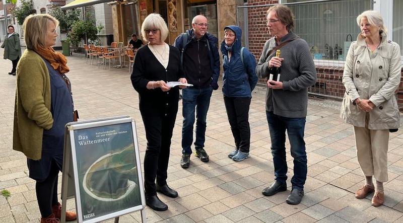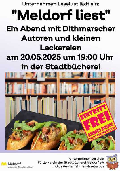 Der Förderverein der Stadtbücherei, Unternehmen Leselust e. V., hatte die Veranstaltung „Meldorf liest“ organisiert und für die Pause ein kleines „Dithmarscher Büfett“ mit Heringssalat, Käse aus Sarzbüttel und kalten Getränken vorbereitet.