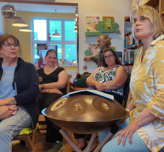 Marion Galinowski startete mit Gedichten, die sie auf Plattdeutsch geschrieben hatte und eindrucksvoll mit Melodien auf der Handpan untermalte.
