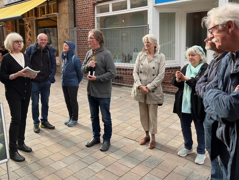 Bei einem Rundgang durch die Ausstellung erläuterte der Künstler Einzelheiten zu den Bildern und die Autorin trug das entsprechende Gedicht vor. "Es war schön, wie schnell sich außerdem lebhafte Gespräche mit den Gästen über mögliche Interpretationen von Bild und Text entwickelt haben", so Ellen Balsewitsch-Oldach.